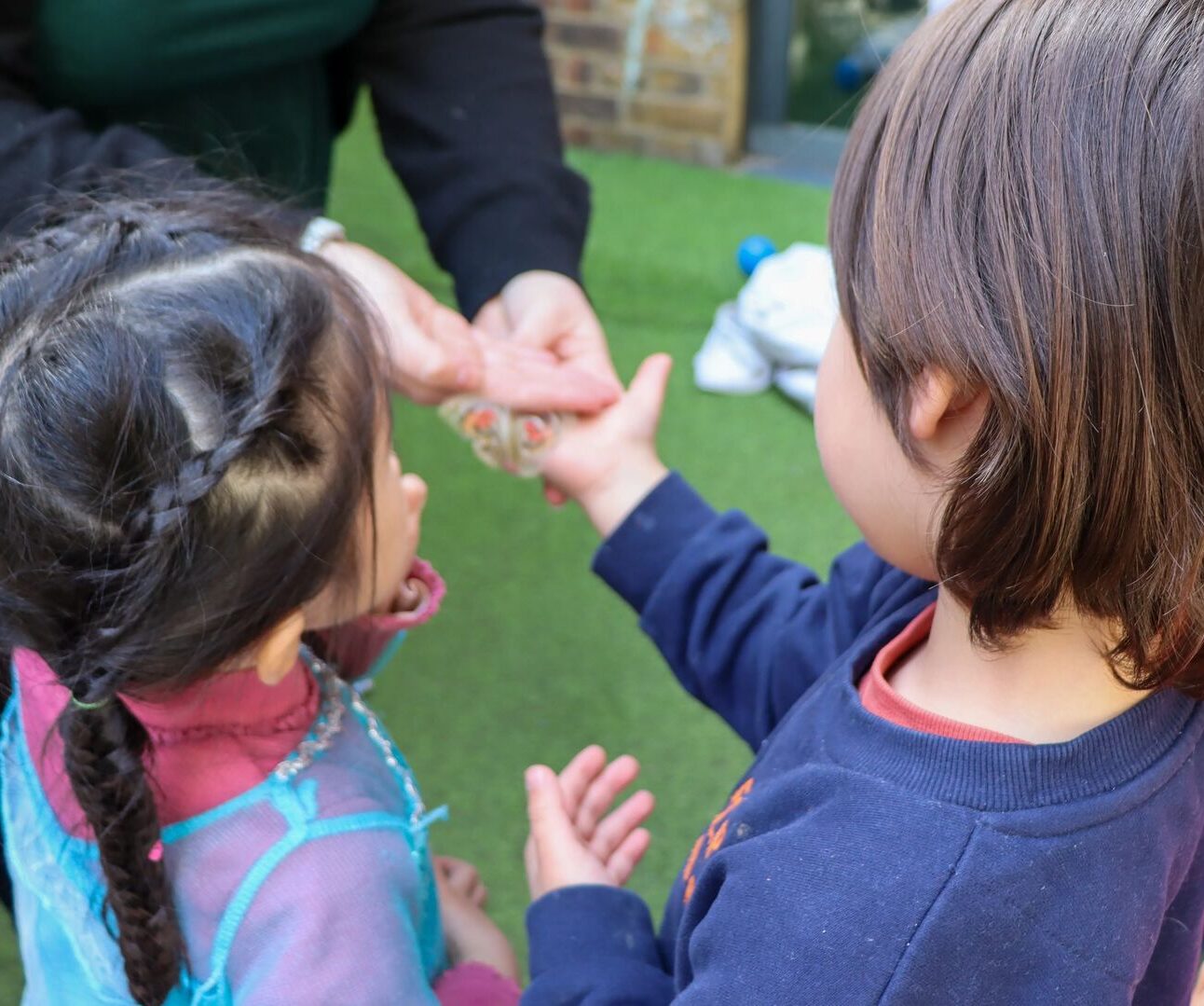 Teacher and child investigating sensory items